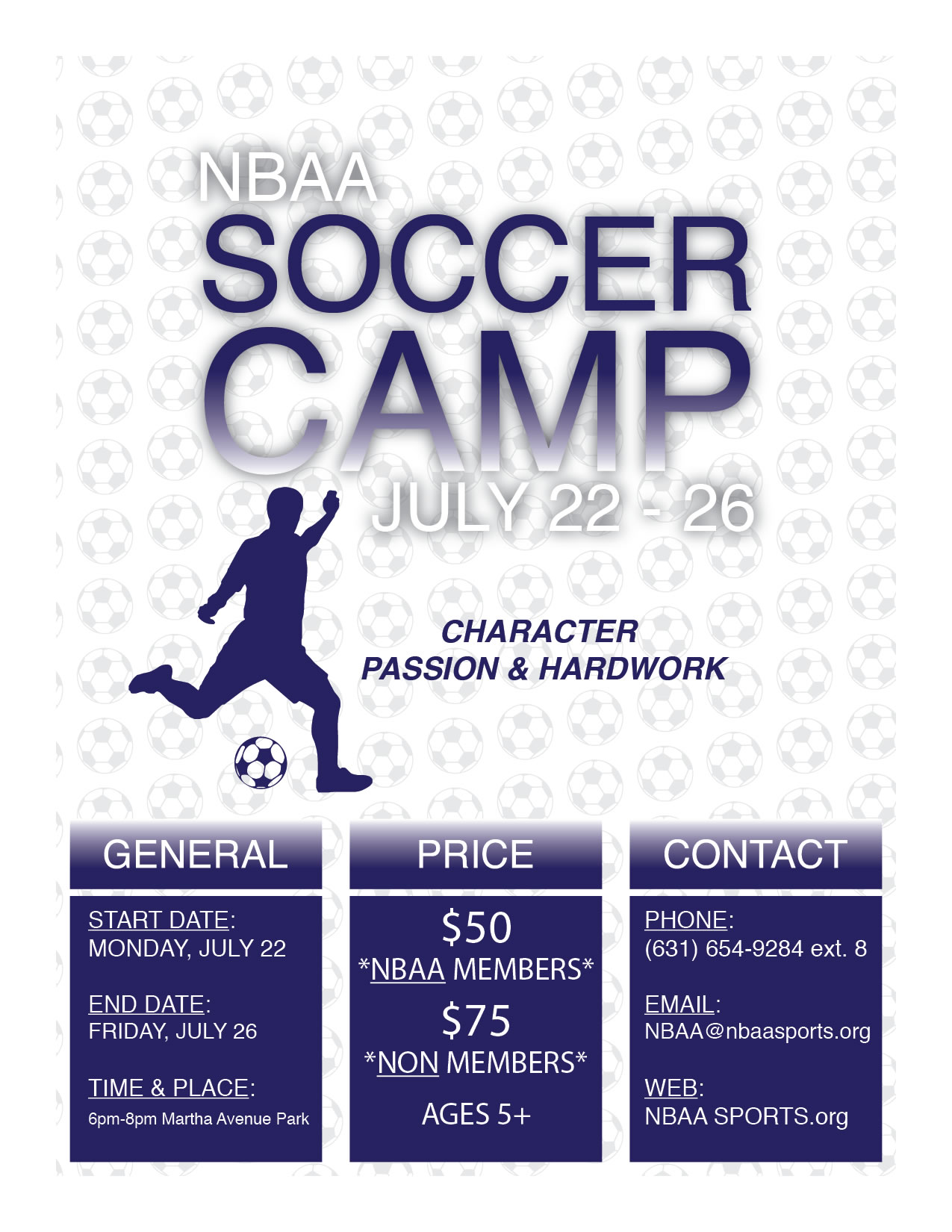 The NBAA will be holding their annual soccer camp from July 22 to 26th. Dont miss out on an opportunity to advance your soccer skills, sign up today!